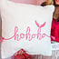 18" Square Cotton Slub Pillow w/ Embroidered "Ho Ho Ho" & Tassels, Natural & Pink