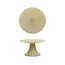 This 6.5" round, 3.75" tall pedestal dish features a delicate scalloped edge and a soft yellow hue, perfect for adding a nostalgic charm to your tabletop. Ideal for serving treats or displaying decor.