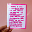 • Card reads, "I meant to send a card right away! ...But then I waited too long, and I got embarrassed. So then I waited even longer until it was really too late. But I just want you to know I'm still thinking of you."