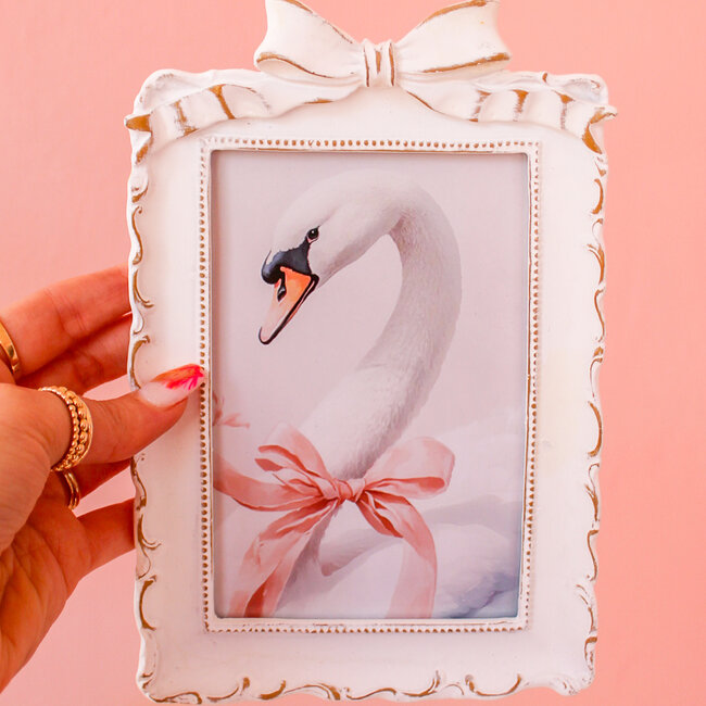 5-1/4"W x 8"H Plastic Photo Frame w/ Bow, Antique White & Gold Finish (Holds 4" x 6" Photo)