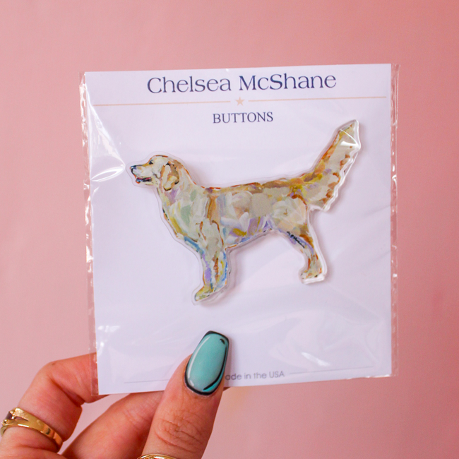 Friendly, loyal, and always cute. This golden retriever button is a sweet way to show love for everyone’s favorite good dog. Read more.