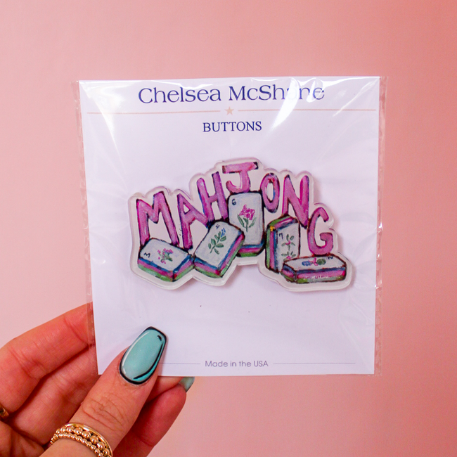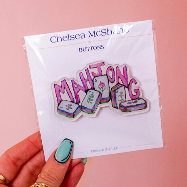 A must-have for mahjong lovers! This playful acrylic button adds a fun pop of personality to bags, jackets, or game night totes.