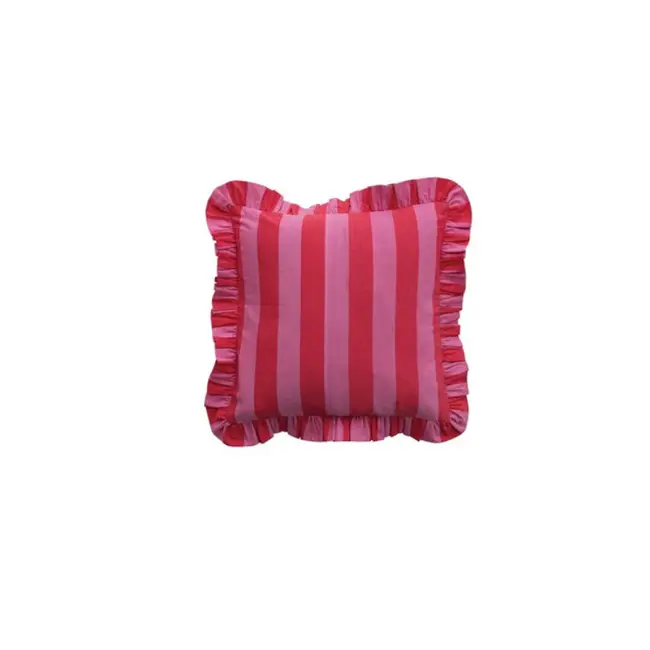 Add a sweet, high-contrast accent to your seating with this pink and red striped pillow!! Featuring bold vertical stripes and a dramatic ruffled border, it brings a playful and romantic energy to any room!!