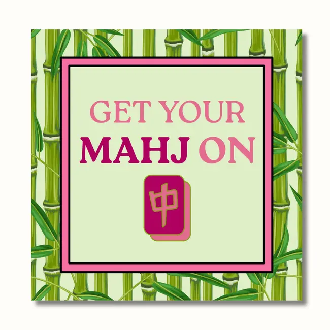 This napkin is perfect for Mahjong night! With a fun twist, there is blended traditional elements of the game with bold colors and "Get Your Mahj On" to bring you the perfect addition to game night!!
