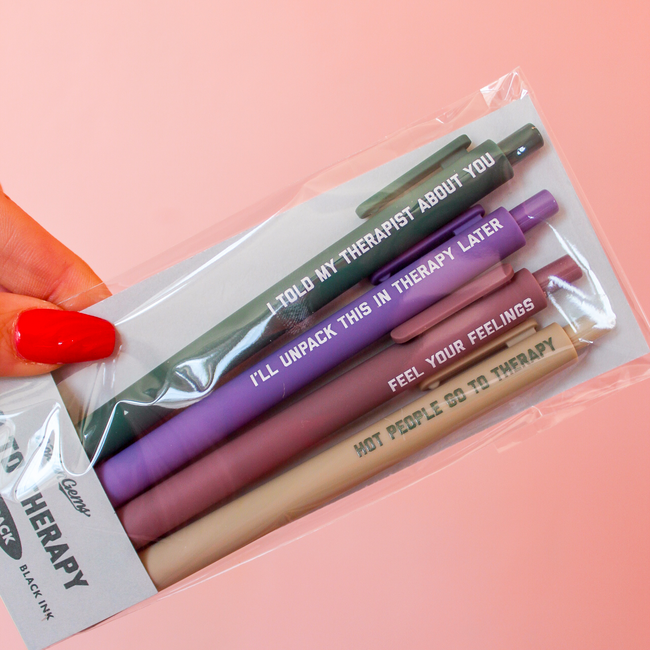 Put your thoughts on paper — or your grocery list, rage journal, or love note to yourself — with this 4-pack of smooth black ink pens. Each one comes stamped with a funny little reminder that life’s too short to take too seriously. Cute, bold, and ready to make your desk a little more fun.