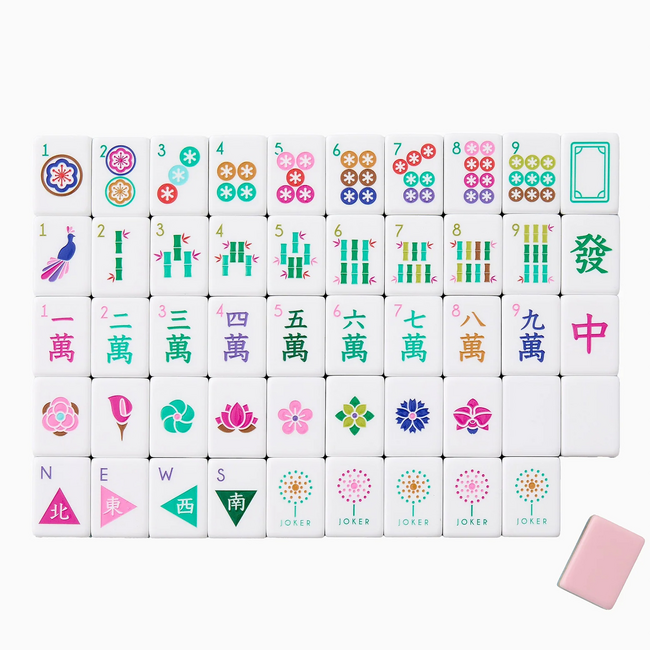 Bright, playful, and full of personality, the La Fete Mahjong Tiles bring a joyful burst of color to every game. Designed with crisp white faces and layered edges in vibrant olive green, pale pink, and teal, this set creates a lively, celebratory palette that feels both fresh and delightfully unexpected.