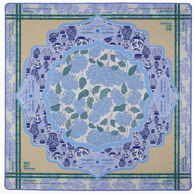 Timeless, refined, and effortlessly elegant, the Luna Mahjong Mat brings a classic blue-and-white palette to your table with a fresh, modern twist. Featuring delicate hydrangea blooms framed by intricate porcelain-inspired motifs and soft bamboo accents, this design evokes the charm of a serene garden retreat.