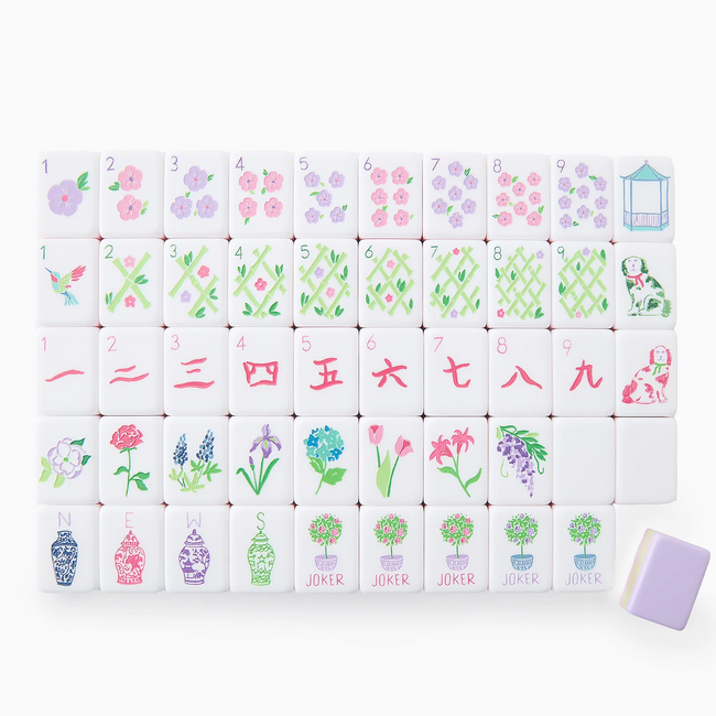Soft, graceful, and effortlessly charming, the Taylor Mahjong Tiles bring a fresh, feminine elegance to the table with a palette that feels both soothing and refined. Featuring a dreamy lilac backdrop layered with refreshing lime green and delicate baby pink accents, this set is the perfect balance of playful color and polished design.
